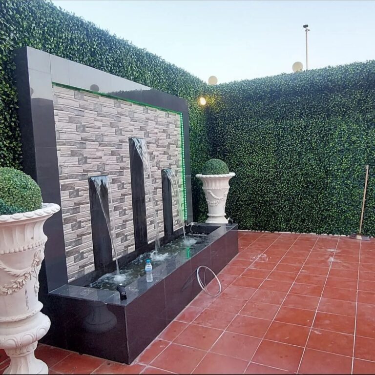 نقدم في تنسيق حدائق جدة ومكة تصاميم توفر أقصى درجات الظل والهدوء. نركز في تصميم شلالات ونوافير بمكة على إنشاء مجاري مائية بمواد عازلة للحرارة الشديدة. دمج النوافير المنزلية مع العشب الجداري يضيف حيوية للمكان ويقلل من جفاف الجو. نحن نهدف إلى تحويل أحواش المنازل في مكة والرياض إلى مجالس خارجية متكاملة، مع مراعاة اختيار أنظمة مائية تتلاءم مع طبيعة التربة والجو الحار للمنطقة.